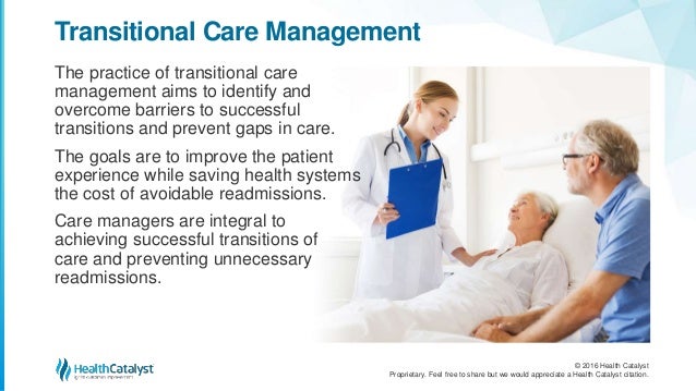 Transitional care is the process of maintaining quality of care while elders and persons with disabilities transition to or from hospital or nursing home facilities and residential or home settings.